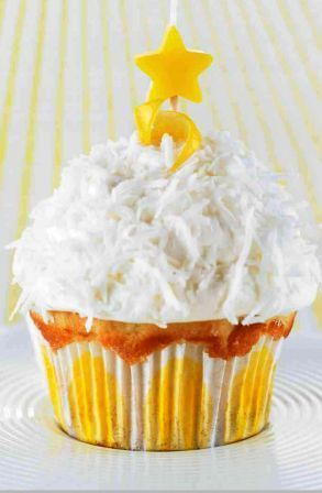 1 gece beklettiğiniz vanilyalı kremayı (buttercream) cupcakelerinizin üzerine krema torbası yardımıyla döküp cupcakelerinizi hindistan cevizi meyveleri ile süsleyin.